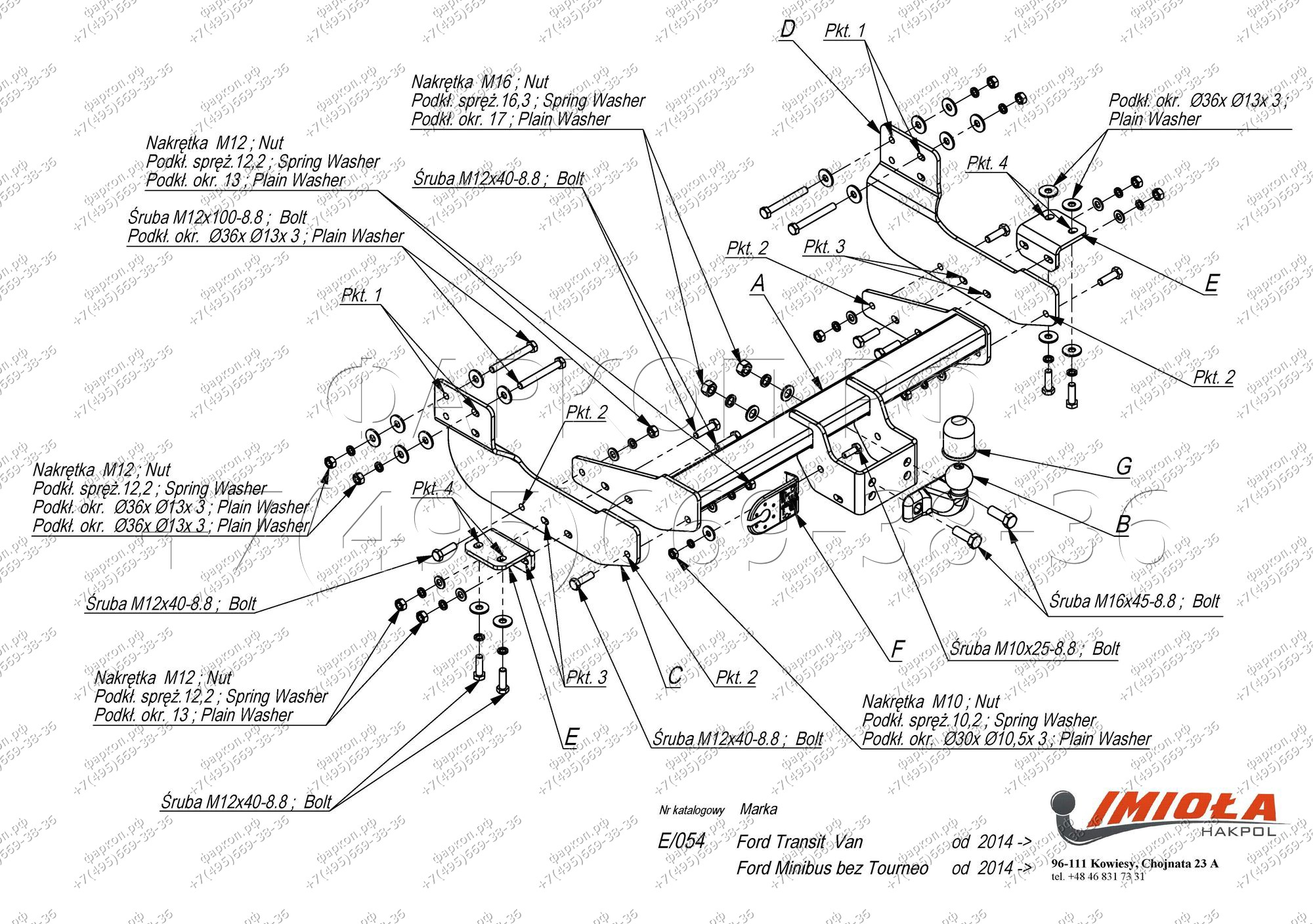 E.054 | IMIOLA | Фаркоп Ford Transit 2014-. Тип шара: F. Установка без снятия и выреза бампера. Нагрузки: 3500/140 кг (без электрики в комплекте) | 21 990 ₽ |