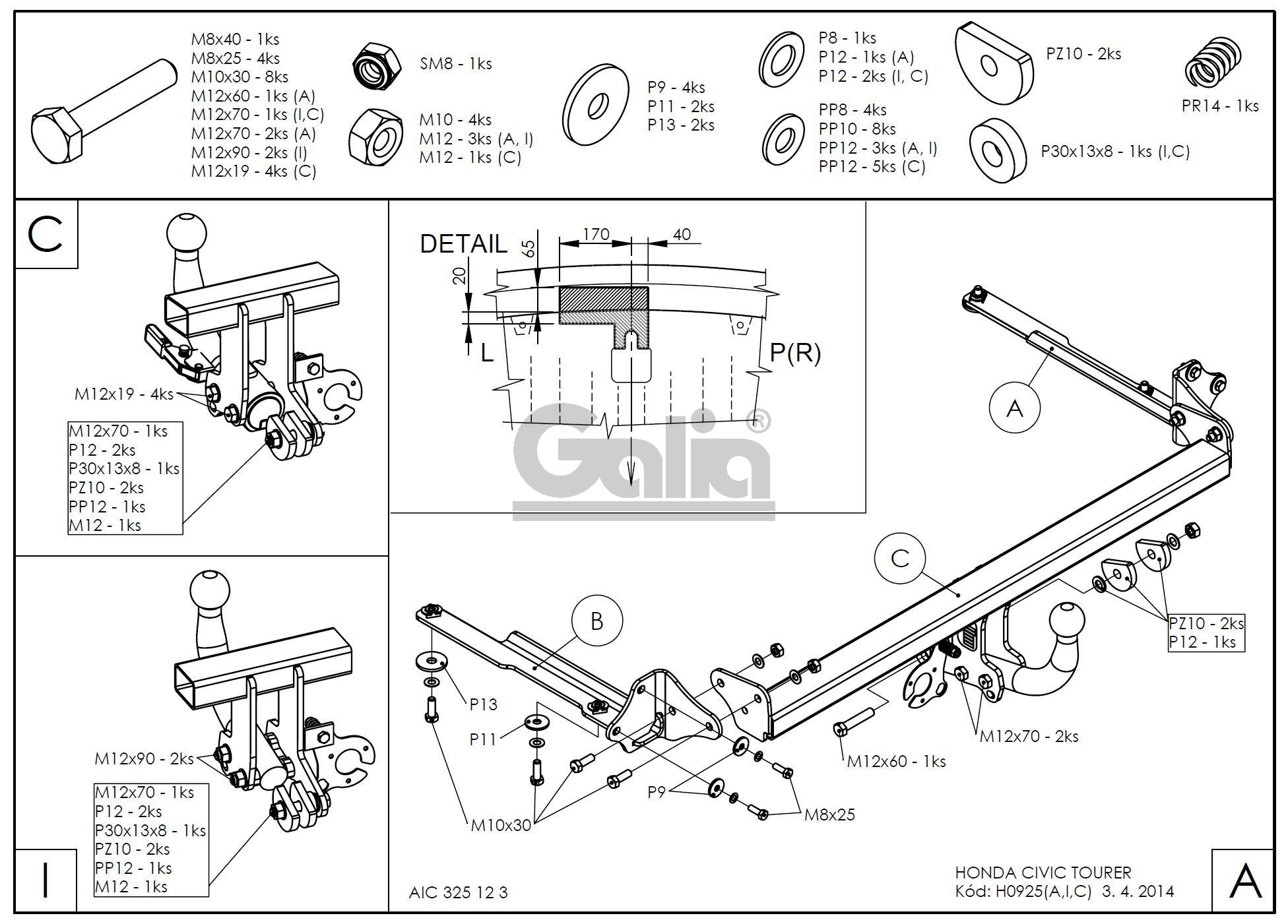 H092A | GALIA | Полностью оцинкованный фаркоп на Honda Civic Tourer универсал 2013-2017. Подрозетник убирается за бампер. Тип шара: A. Невидимый вырез бампера. Нагрузки: 1500/75 кг, масса фаркопа 14,77 кг | 23 990 ₽ |
