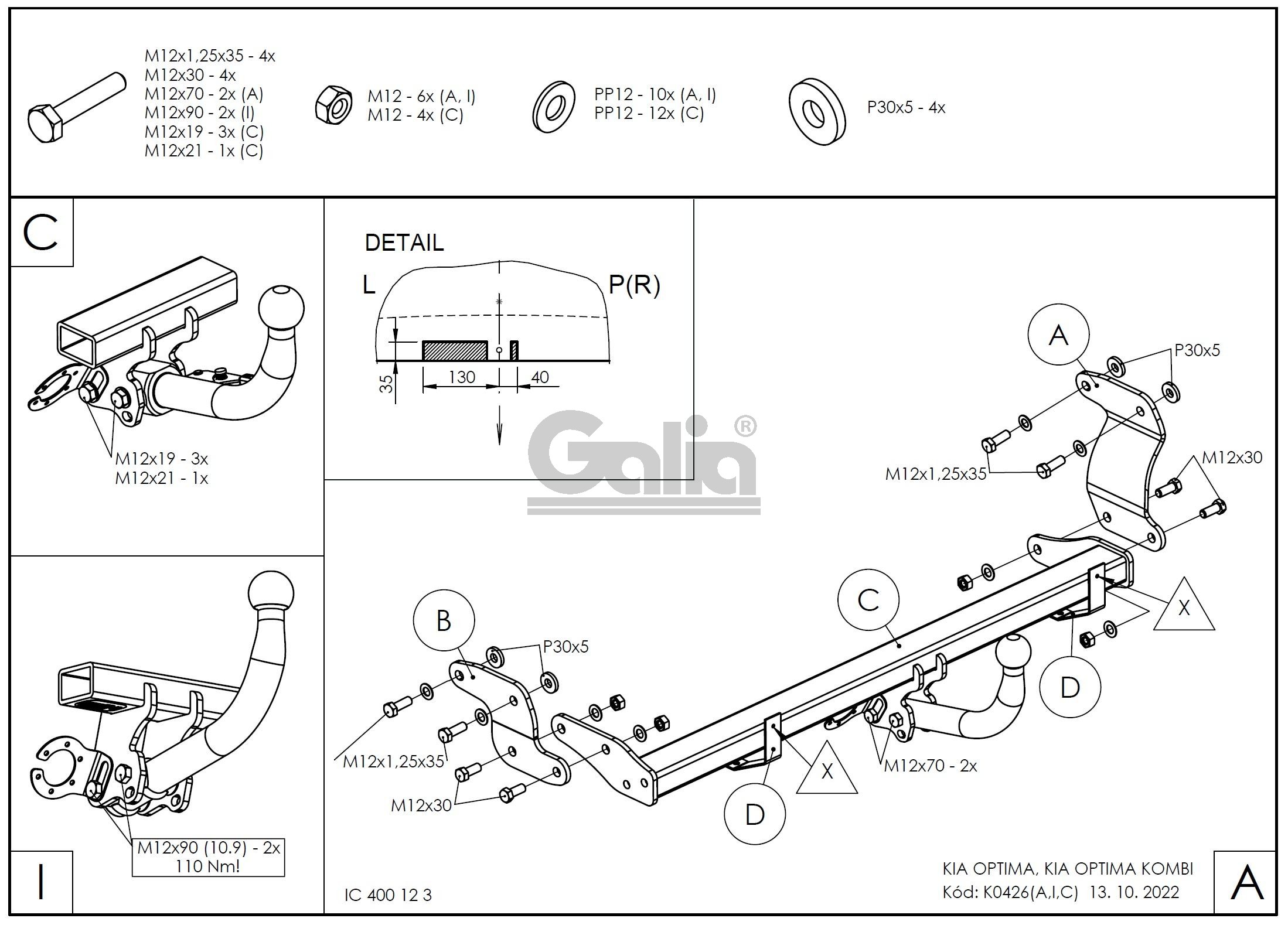K0426C | GALIA | Полностью оцинкованный фаркоп на Kia Optima седан/универсал, только дизель с AdBlue tank 2017-2020. Тип шара: C (горизонтальный съемный). Невидимый вырез бампера. Нагрузки: 1800/90 кг, масса фаркопа 17,17 кг | 31 990 ₽ |