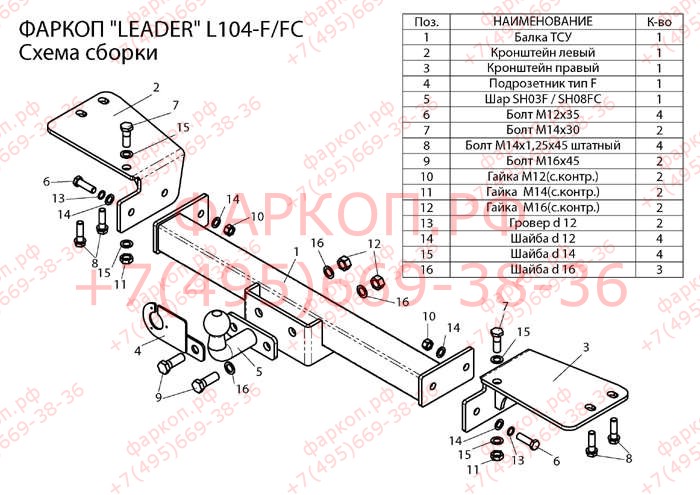 L104-FC | Лидер-плюс | ТСУ для Toyota Land Cruiser 100 1998-2008, Lexus LX470 1998-2007 без снятия и выреза бампера. Тип шара: FC. Нагрузки: 1200/50 кг, масса фаркопа 17,28 кг (без электрики в комплекте) | 9 900 ₽ |