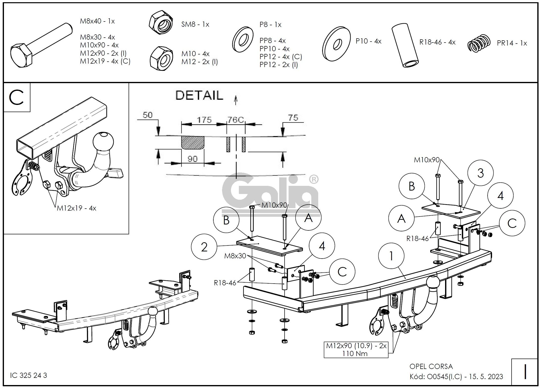 O072C | GALIA | Полностью оцинкованный фаркоп на Opel Corsa 2019-, Peugeot 208 2019-. Тип шара: C (горизонтальный съемный). Без подрезки бампера. Нагрузки: 1400/75 кг, масса фаркопа 15,27 кг | 30 990 ₽ |