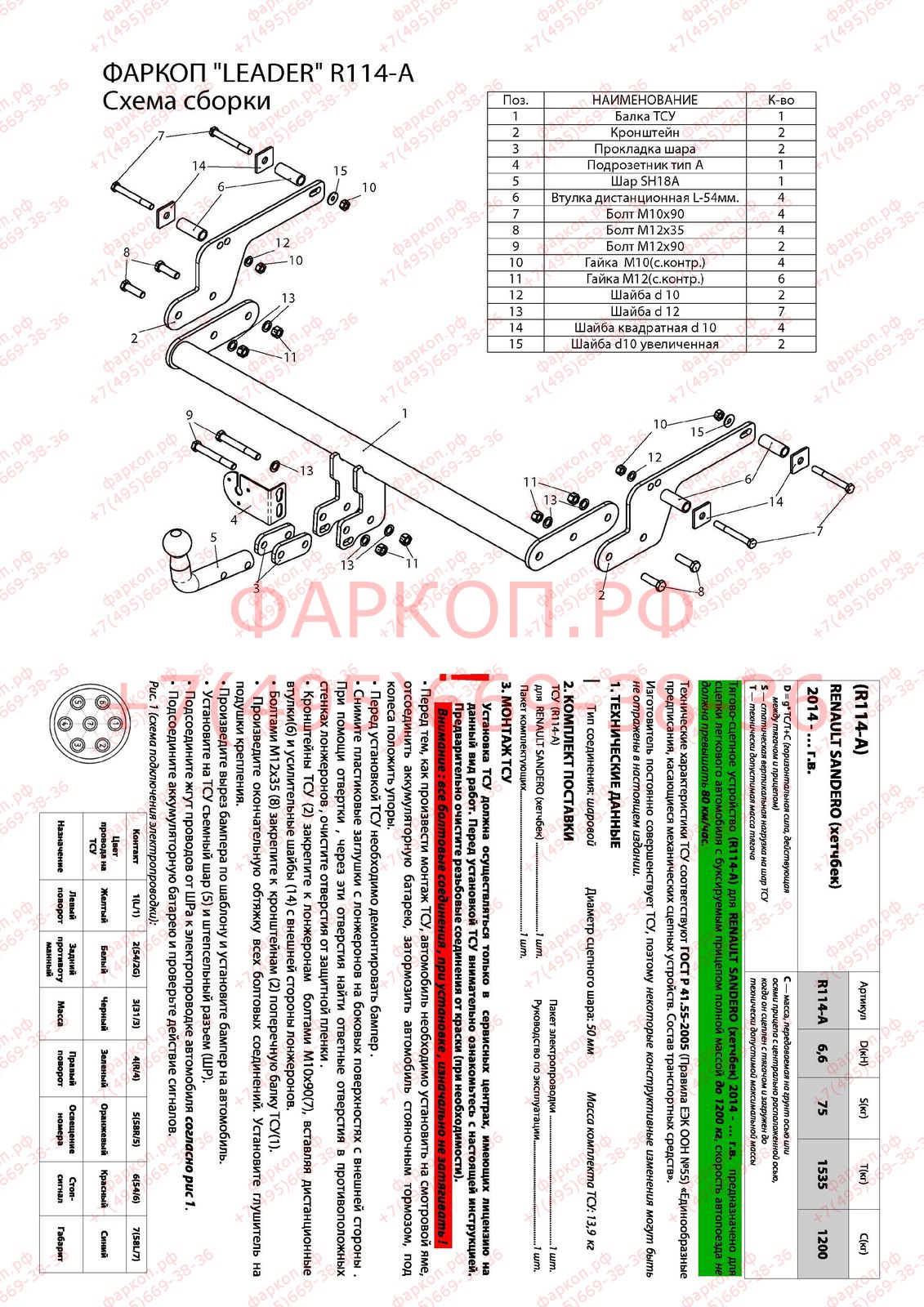 RN 15 | AvtoS | Фаркоп на Renault Logan I седан 2005-2014, Logan II седан 2014-2022 без выреза бампера, Renault Sandero 2014-2022, Renault Sandero Stepway 2014-2022 требуется вырез в бампере. Тип шара: A. Нагрузки: 1200/75 кг, масса фаркопа 13,5 кг (без электрики в комплекте) | 7 280 ₽ |
