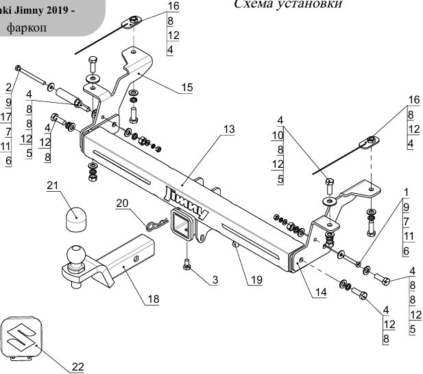 S407-FC | Лидер-плюс | ТСУ для Suzuki Jimny 2018- без выреза бампера. Нагрузки: 1000/50 кг, масса фаркопа 14,64 кг (без электрики в комплекте) | 8 900 ₽ |