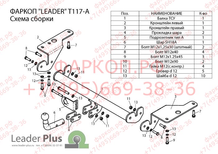 T117-A | Лидер-плюс | ТСУ для Toyota Corolla седан E150 2007-2013, E170 (кроме арабской версии) 2013-2019 без снятия и выреза бампера. Нагрузки: 1500/75 кг, масса фаркопа 15,36 кг (без электрики в комплекте) | 8 510 ₽ |