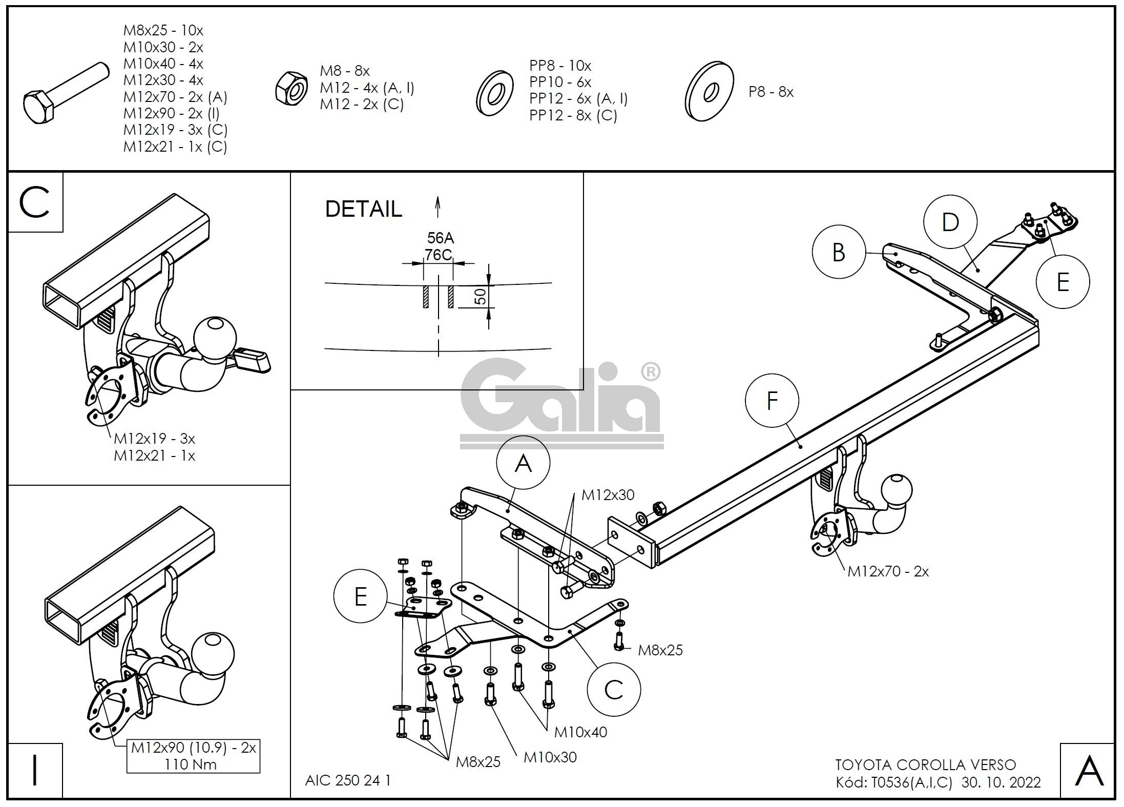 T053C | GALIA | Полностью оцинкованный фаркоп на Toyota Corolla Verso 2004-2009. Тип шара: C (горизонтальный съемный). Требуется подрезка бампера. Нагрузки: 1400/60 кг, масса фаркопа 16,36 кг | 28 490 ₽ |