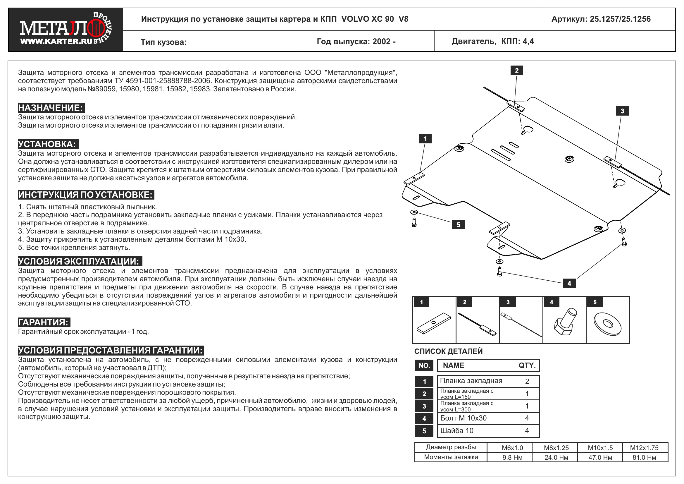 02619 | Motodor | Усиленная защита картера двигателя, КПП (2 мм, сталь) для Volvo XC90 2002-2015 | 7 800 ₽ |