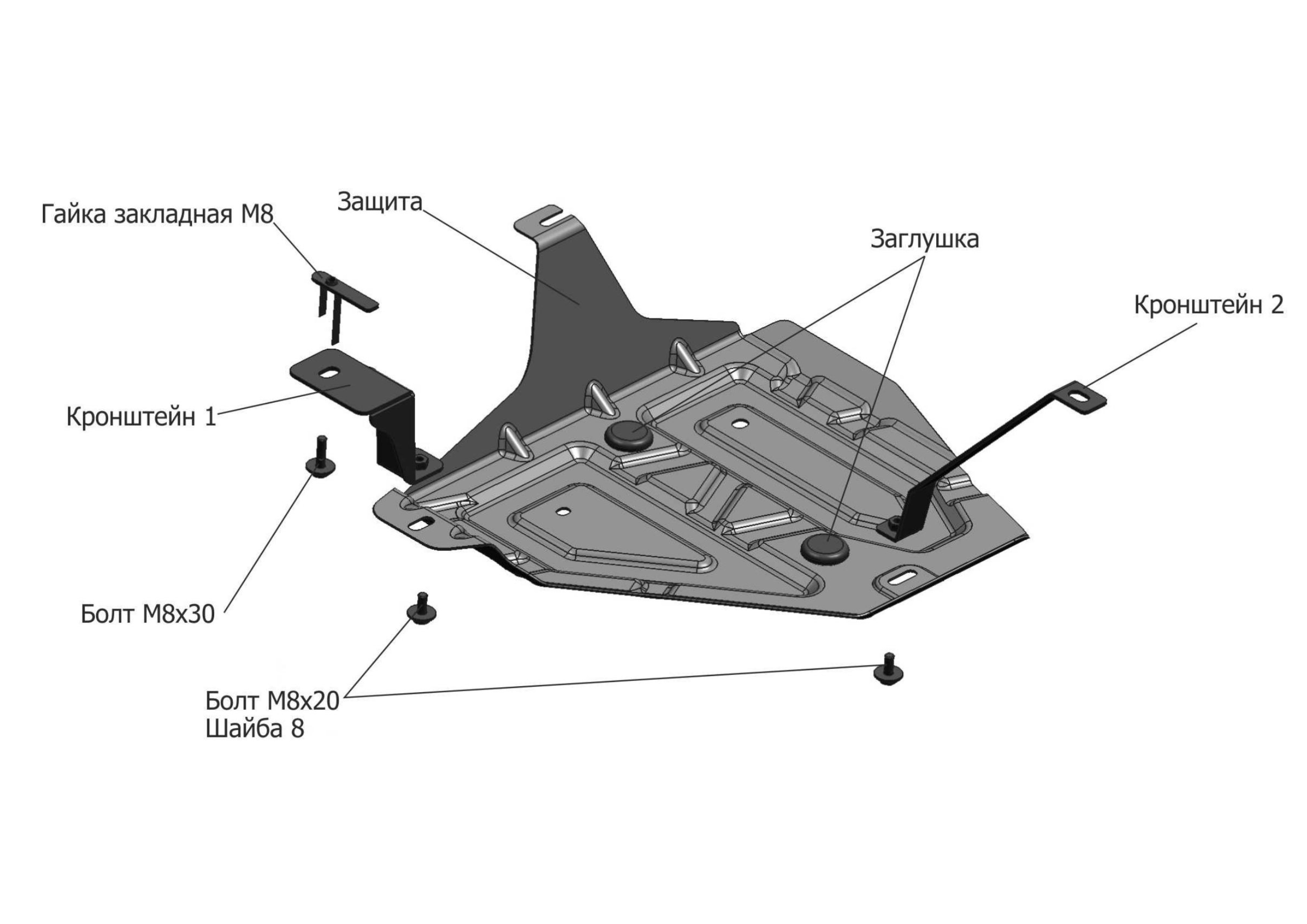 111.02365.1 | АвтоБроня | Защита топливного бака (сталь 1,5 мм) + комплект крепежа для Hyundai Creta 2016-2021, 2021-2022 (V - 1.6; 2.0, привод - все), Solaris HC 2024- | 2 720 ₽ |