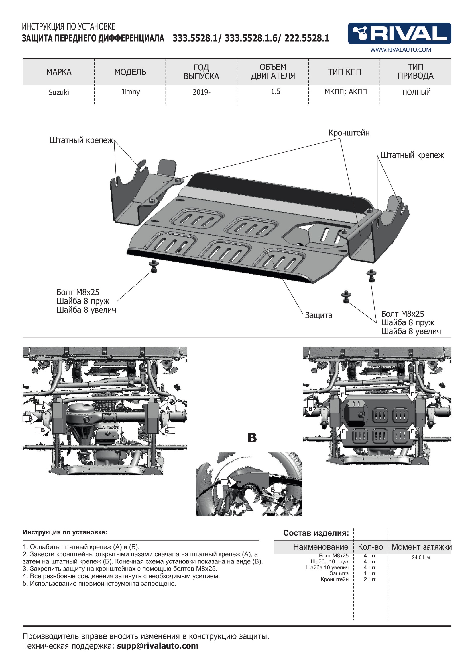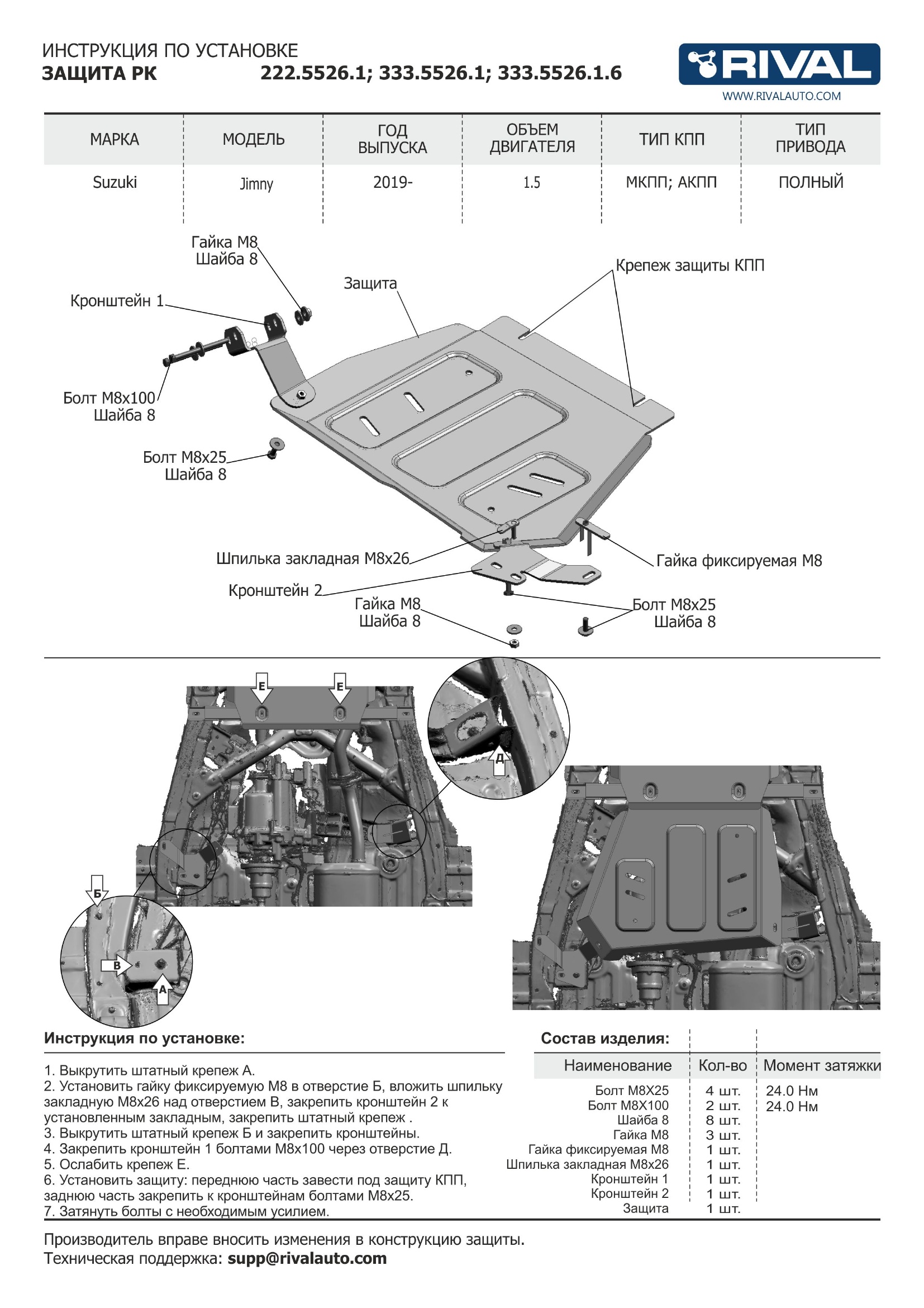 333.5525.1 | Rival | Защита КПП (алюминий 4 мм) + комплект крепежа для Suzuki Jimny 2018- (V - 1.5) | 13 120 ₽ |