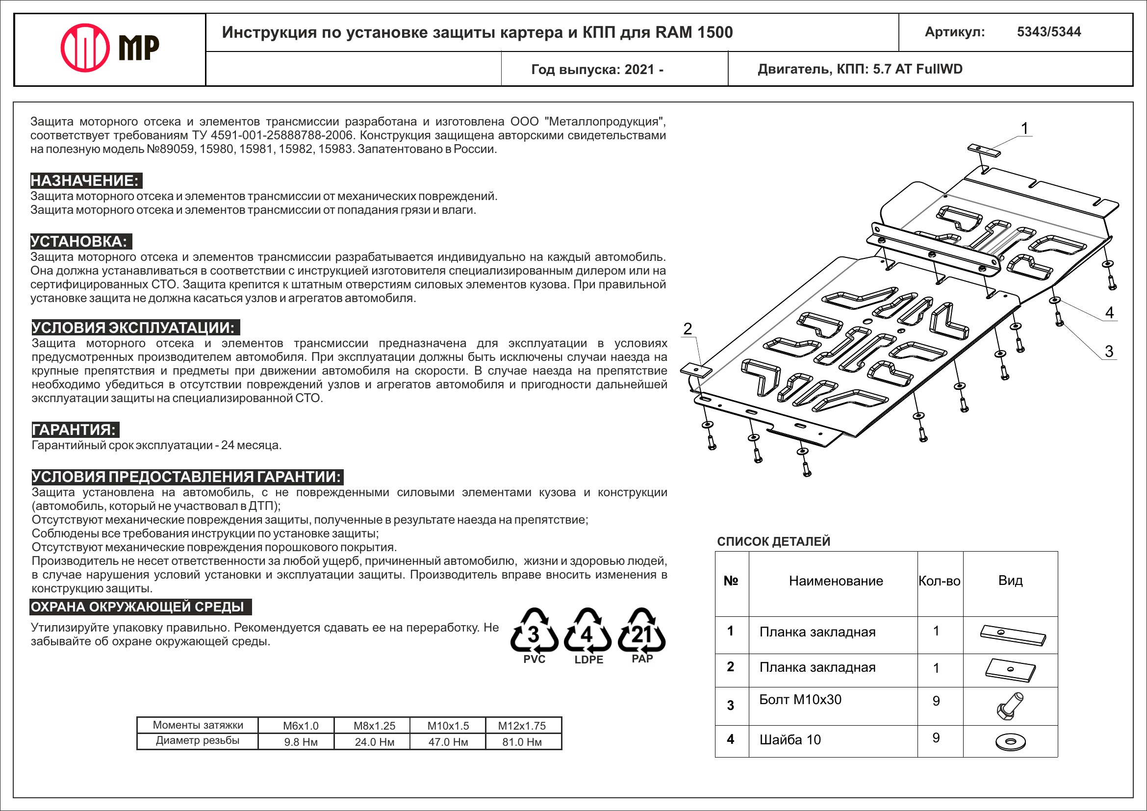 04.5343 | Sheriff | Усиленная защита картера двигателя, КПП (3 мм, сталь) для Dodge RAM 1500 2021- (V = 5.7 AT 4WD) | 14 120 ₽ |
