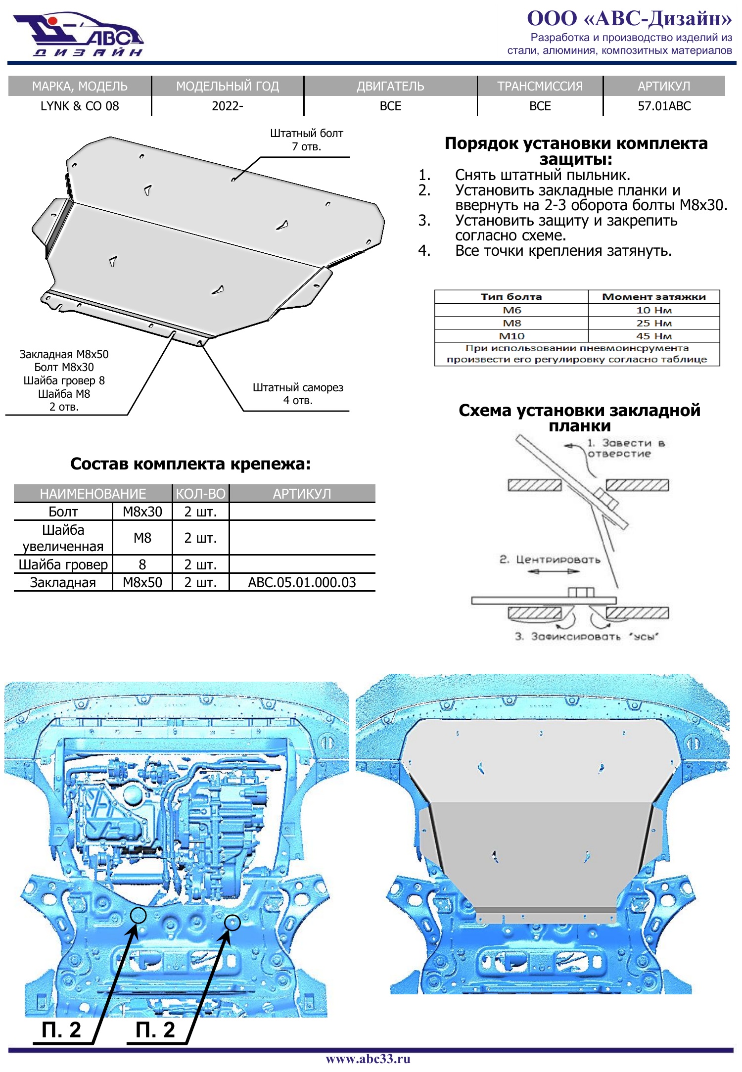 57.01ABC | АВС-Дизайн | Защита картера, КПП (алюминий 4 мм) для Link&Co 08 2022- | 13 290 ₽ |