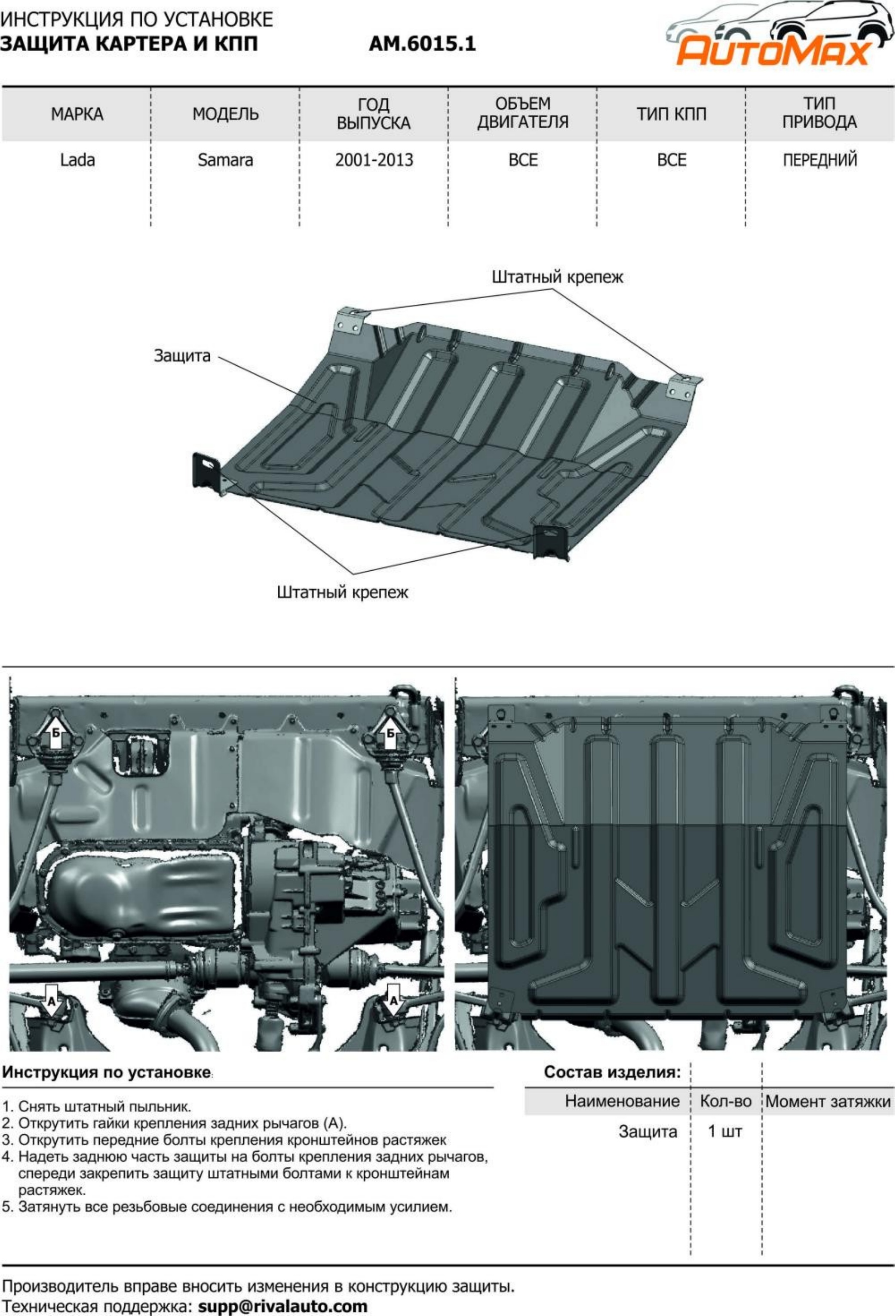 AM.6015.1 | AutoMax | Защита картера + КПП (сталь 1,4 мм) без крепежа для Lada Samara 2108, 2109, 2113, 2114, 2115 1984-2013 (V - все) | 2 950 ₽ |