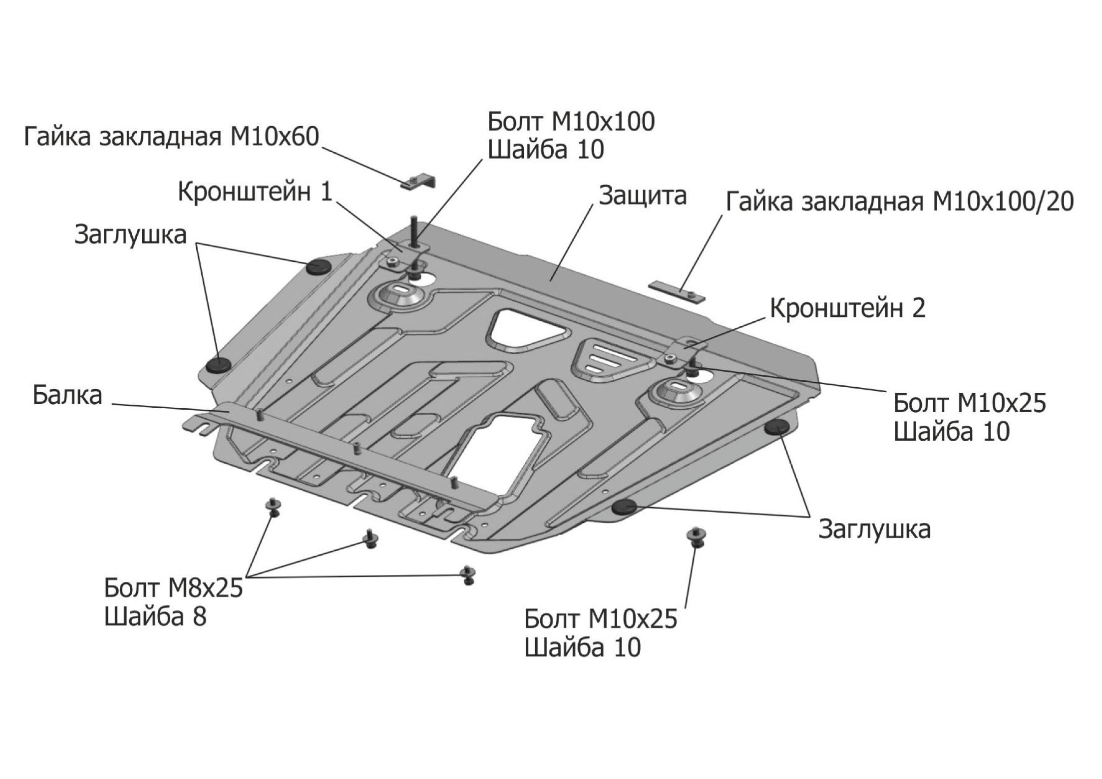 111.09530.1 | АвтоБроня | Защита картера + КПП (сталь 1,8 мм) + комплект крепежа для Toyota Corolla 2018- (V - 1.6) | 3 760 ₽ |