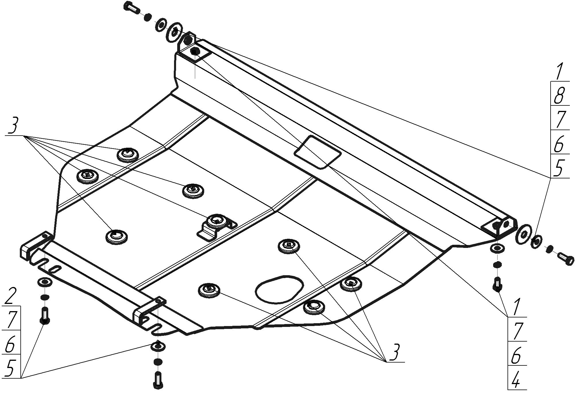 02524 | Motodor | Усиленная защита картера двигателя, КПП (2 мм, сталь) для Toyota Corolla Verso 2001-2004, 2004-2009 | 7 690 ₽ |