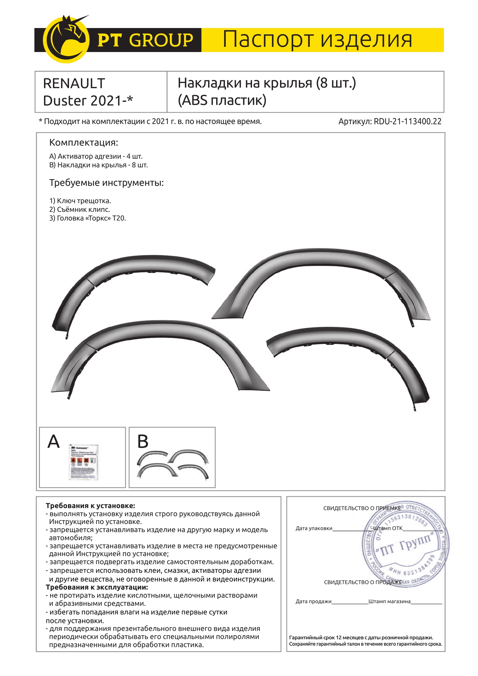 RDU-21-113400.22 | PT GROUP | Накладки на крылья 8 шт (ABS) Renault Duster 2021-2022 | 6 690 ₽ |