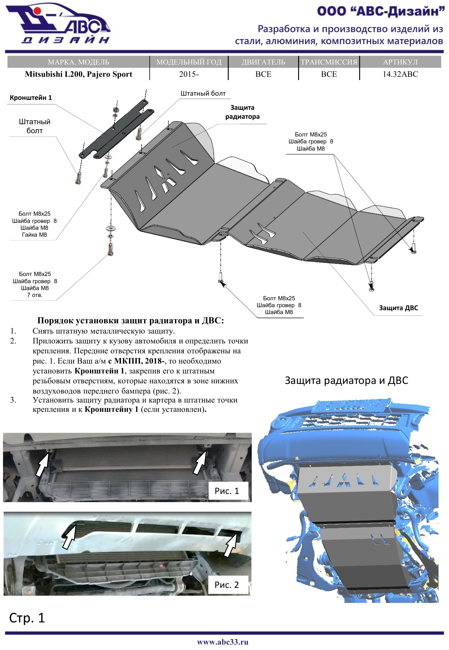 14.30ABC | АВС-Дизайн | Защита радиатора (алюминий 4 мм) для Mitsubishi Pajero Sport 2016- (V - все), Mitsubishi L200 2015-2023 (V - все), FIAT Fullback 2016-2019 (V - все) | 8 580 ₽ |