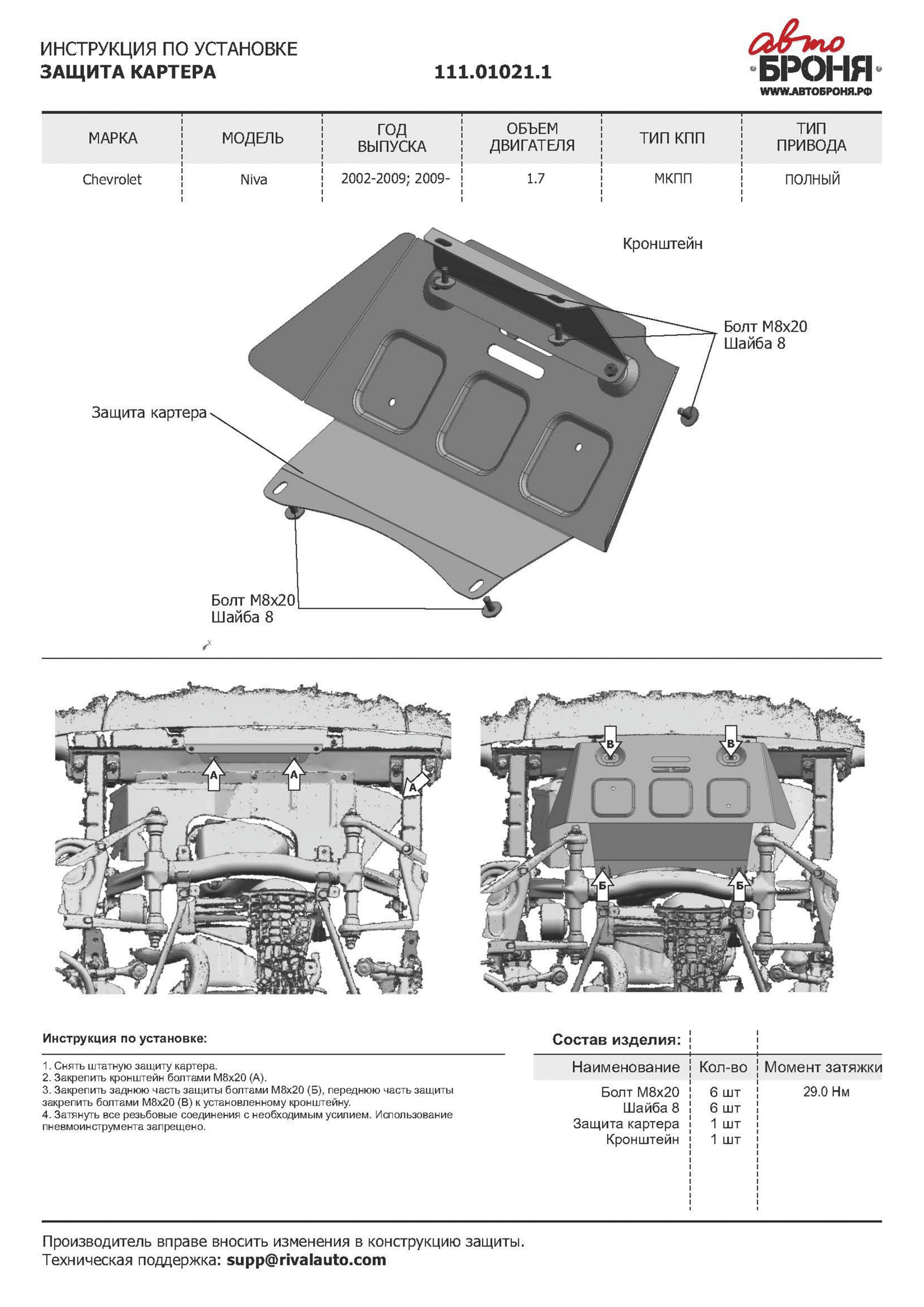 111.01011.3 | АвтоБроня | Защита РК (сталь) + комплект крепежа для Lada Niva 2020- (V - 1.7), Chevrolet Niva 2002-2020 (V - 1.7) | 3 450 ₽ |