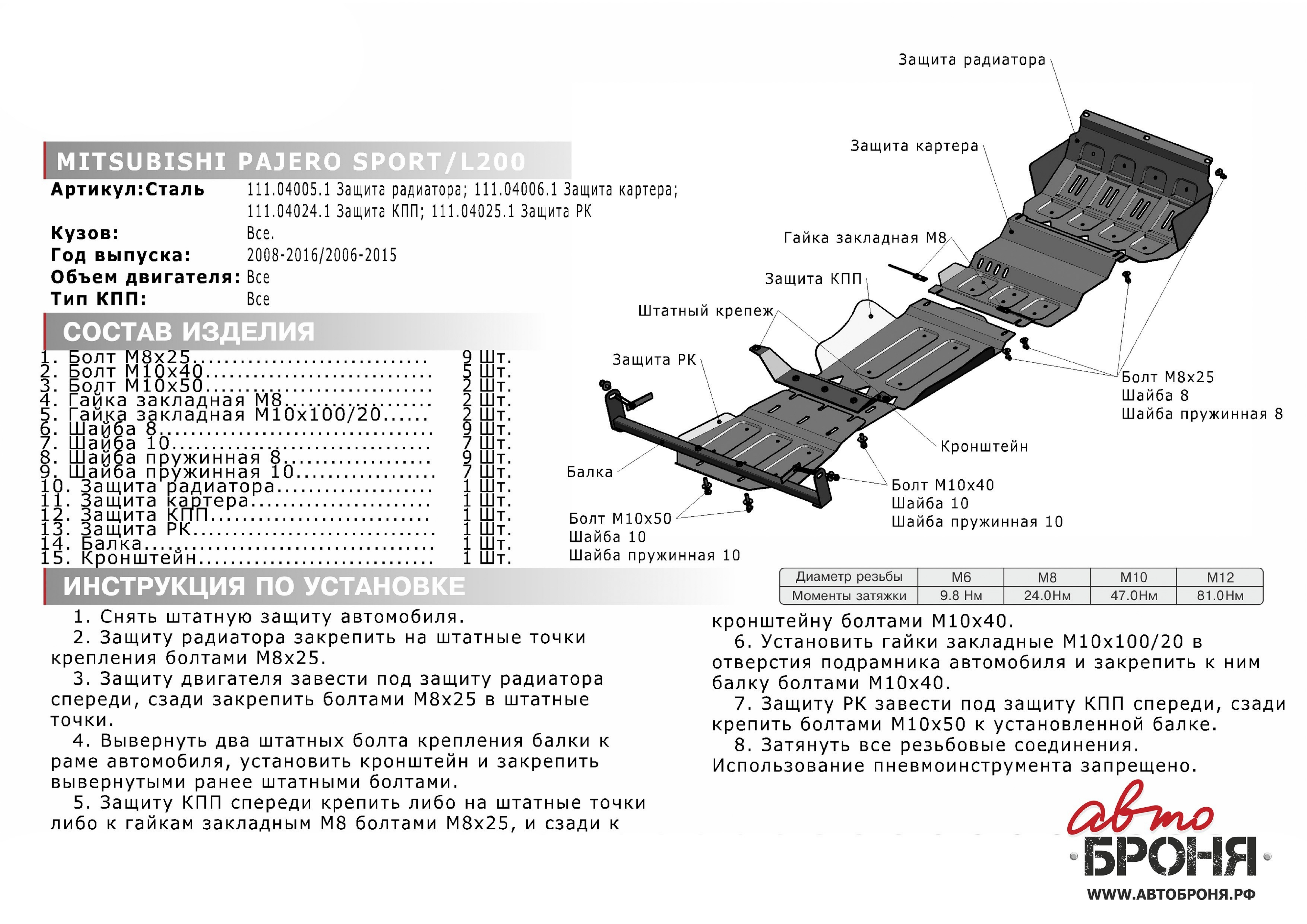 111.04024.1 | АвтоБроня | Защита КПП (сталь 1,8 мм) + комплект крепежа для Mitsubishi Pajero Sport 2008-2016 (V - все), Mitsubishi L200 2006-2015 (V - все) | 3 480 ₽ |