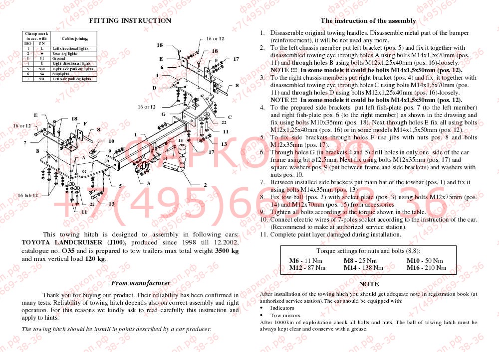 Фаркоп на Toyota Land Cruiser 100 VX 1998-2007, Lexus LX470 1998-2007 без подрезки бампера. Тип шара: F. Нагрузки: 3500/100 кг, масса фаркопа 37,1 кг | 7-30 дней | |||