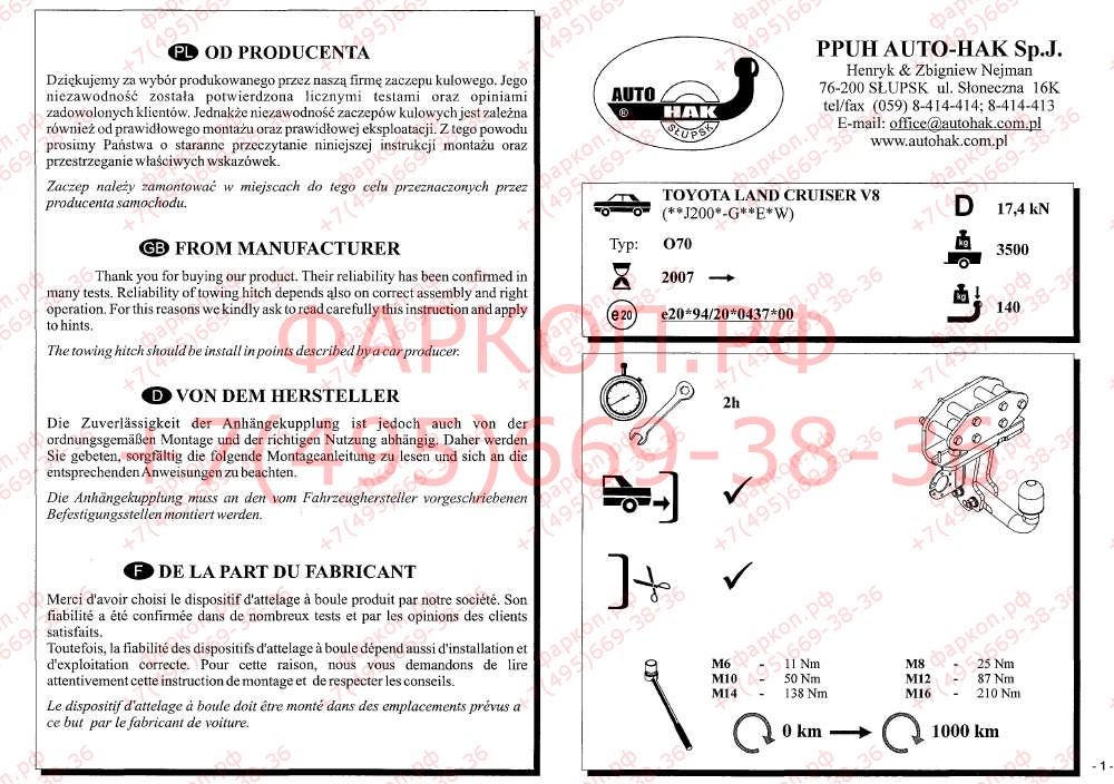 | Если Вам необходима консультация по подбору фаркопа на Тойота Ленд Крузер просто позвоните нам по телефону Внимание! На все фаркопы для Ленд Крузер действует предложение лучшей цены, то есть скидка на фаркоп, если Вы нашли его дешевле. Условия покупки фаркопа на Ленд Крузер по самой низкой цене. |