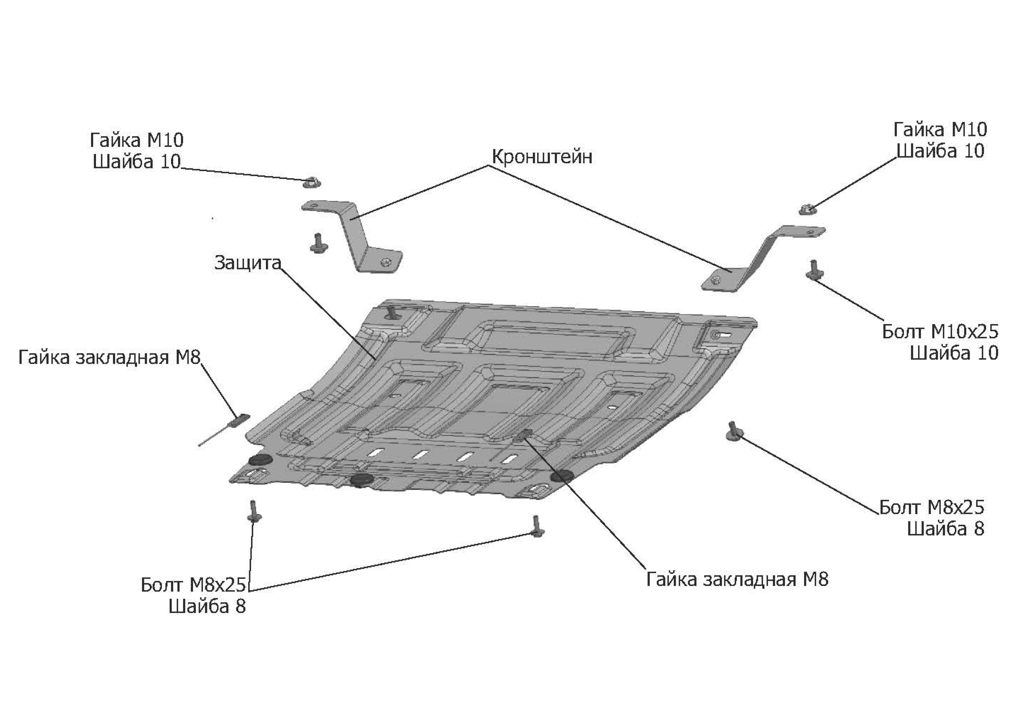 111.02393.1 | АвтоБроня | Защита картера + КПП (сталь 1,5 мм) + комплект крепежа для Hyundai Creta 2021-2022 (V - 1.6; 2.0), Solaris HC 2024- | 4 550 ₽ |