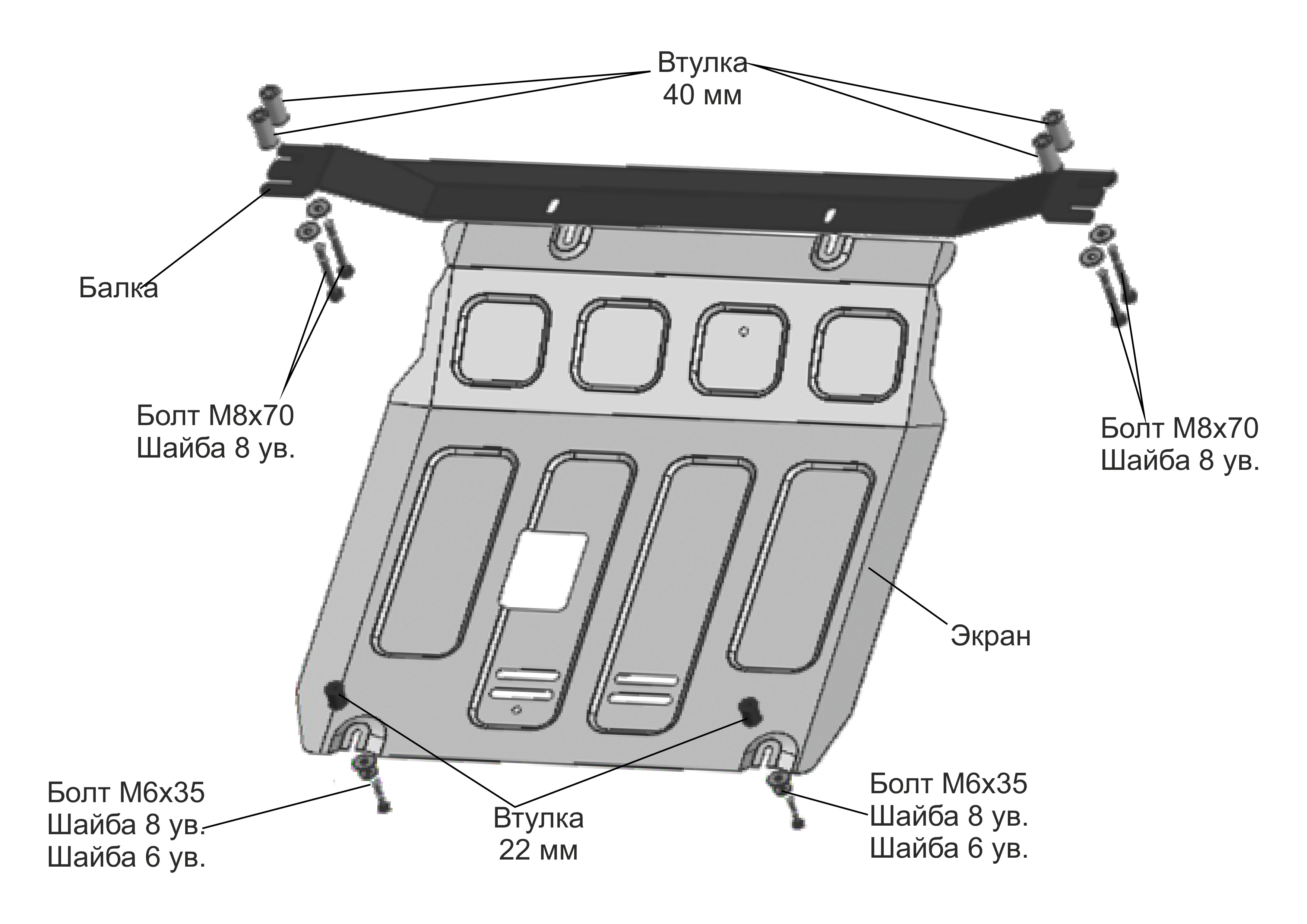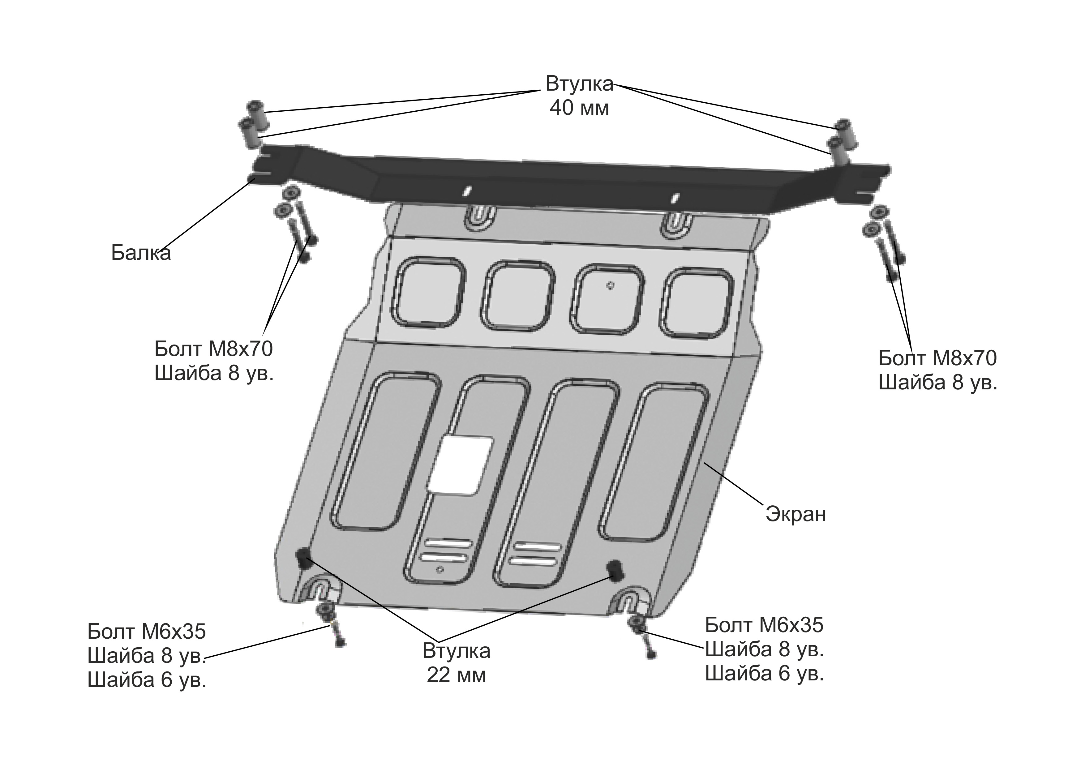 74208 | Motodor | Усиленная защита картера двигателя, КПП (2 мм, сталь) для Geely Okavango 2023- | 6 690 ₽ |