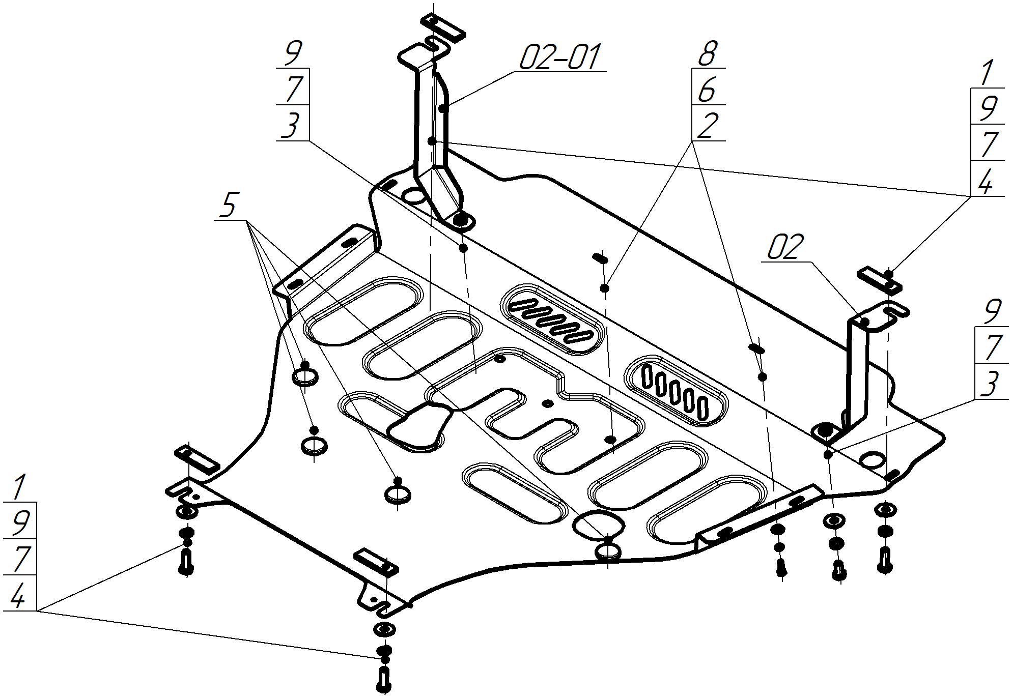 333.1941.1 | Rival | Защита картера (алюминий 3 мм) + комплект крепежа для Geely Okavango 2023- (V - 1.5T, РКПП, FWD) | 9 370 ₽ |